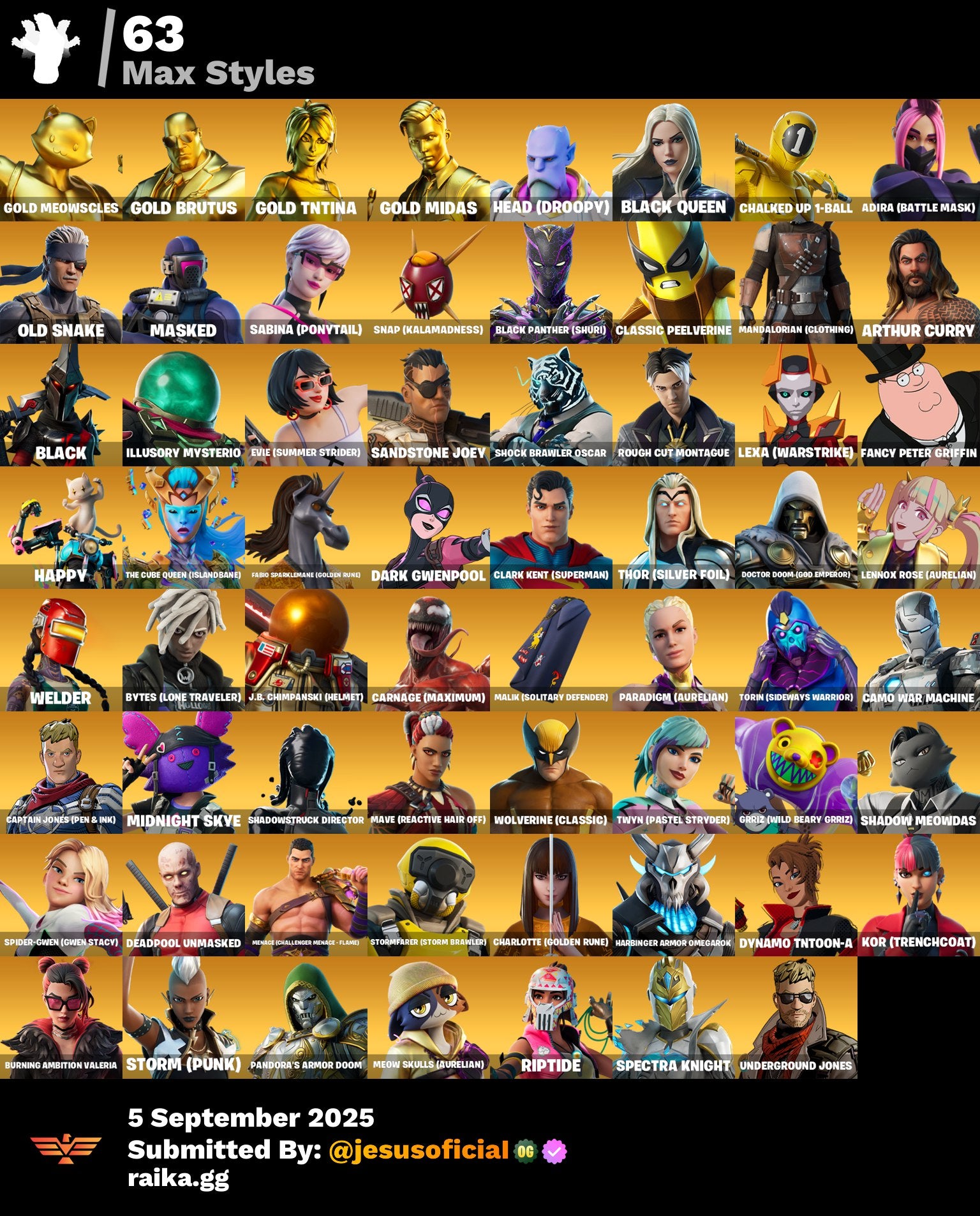 CUENTA FORTNITE 134 SKINS "GOLD MIDAS + PASE MARVEL + RISA DE BURRO"