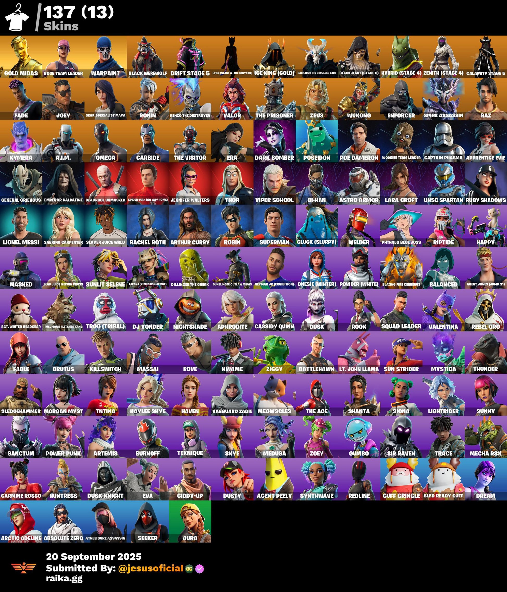 CUENTA FORTNITE 137 SKINS "GOLD MIDAS + STW OG + JUSTICIA NARANJA"